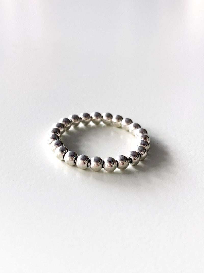 小さな銀のボールを連結したリングは
