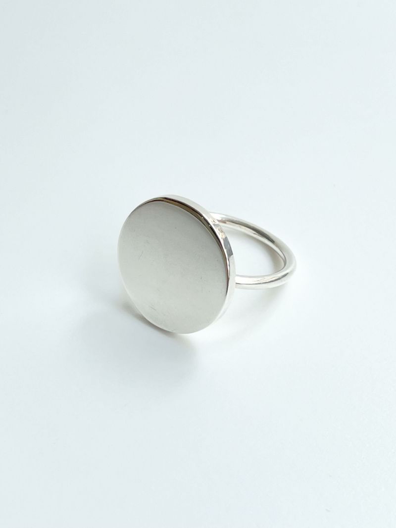 円形のシルバープレート(約2cm)をあしらったシンプルなリング