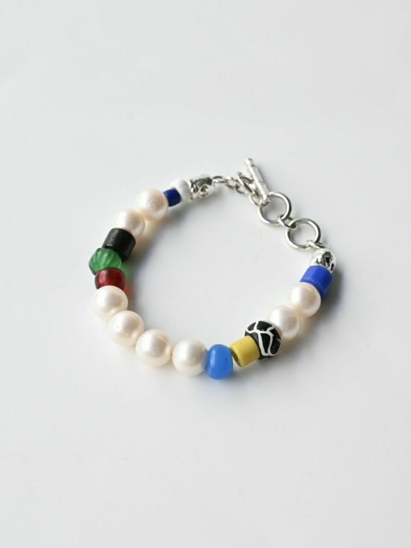 アンティークトレードビーズと淡水パールとシルバーパーツMIX