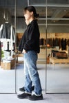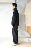 襟 袖口 裾へウールニットリブを用いたスタンドアップカラーデザイン