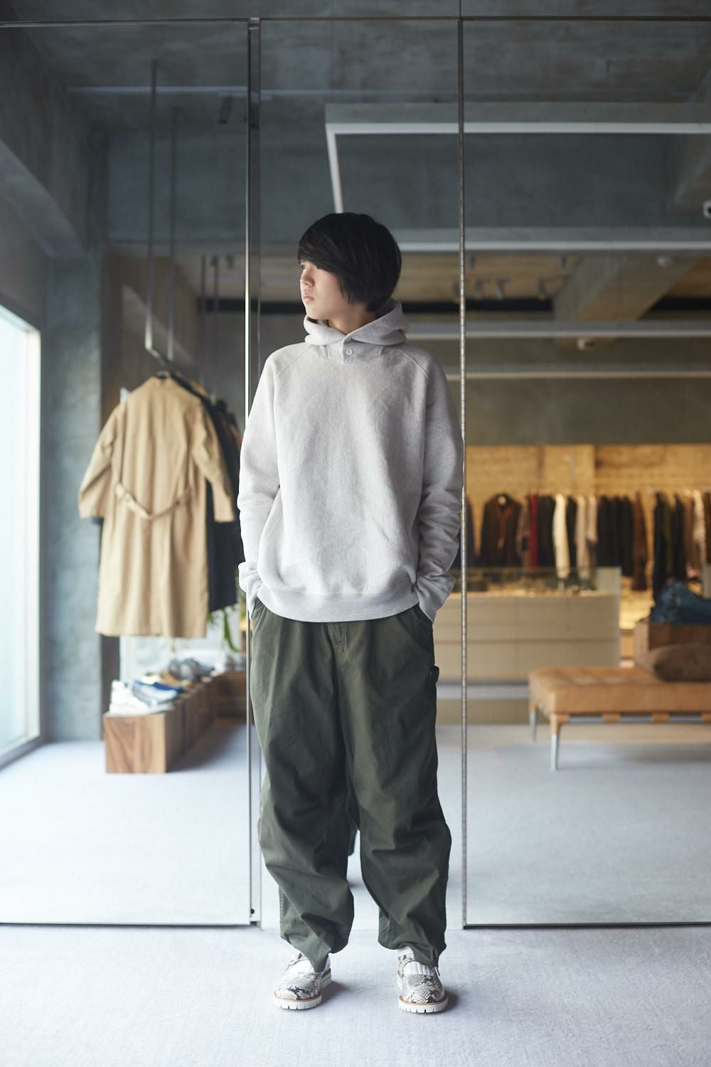 スタンディングオープンパーカー