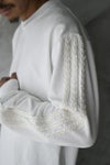 両袖はコットンベースのベロアパイル素材にて