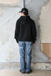 フード前部分 ショールカラーの様にカーブを描くカッティングにも要注目